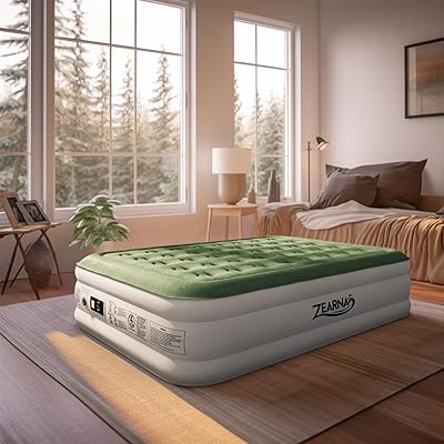 The Zearna Air Mattress with built-in pump is designed for quick setup and occasional use. Inflation is straightforward—the integrated pump fully inflates the mattress in about 3 to 4 minutes, and deflation takes roughly the same time. The control dial is simple, and the built-in cord storage cubby keeps things tidy. Once inflated, the 18-inch height feels similar to a standard bed, making it easy to get in and out of, especially for guests or older users.