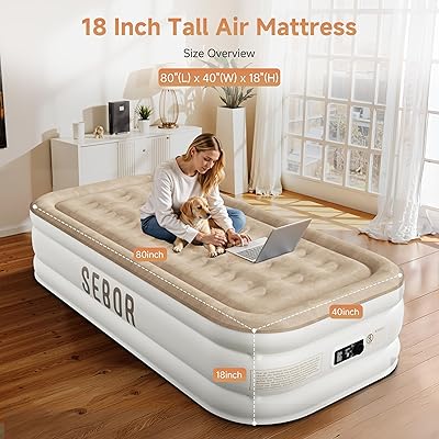 The Sebor Air Mattress Twin is designed for users who want a quick, sturdy, and comfortable sleeping setup for guests, travel, or short-term stays. Built with an upgraded PVC material and patented internal coil structure, it offers solid stability and support while keeping setup simple with its integrated electric pump.